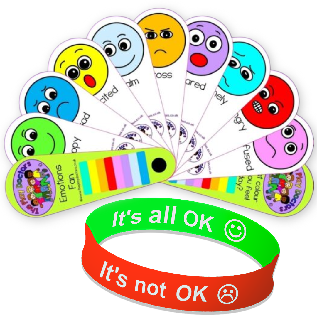 Emotional Communication Set for Kids – Emotions Face Feelings Fan & Silicone Mood Wristband – Autism, SEN & ADHD Visual Aids for Non-Verbal Speech Delay – Home & School Support